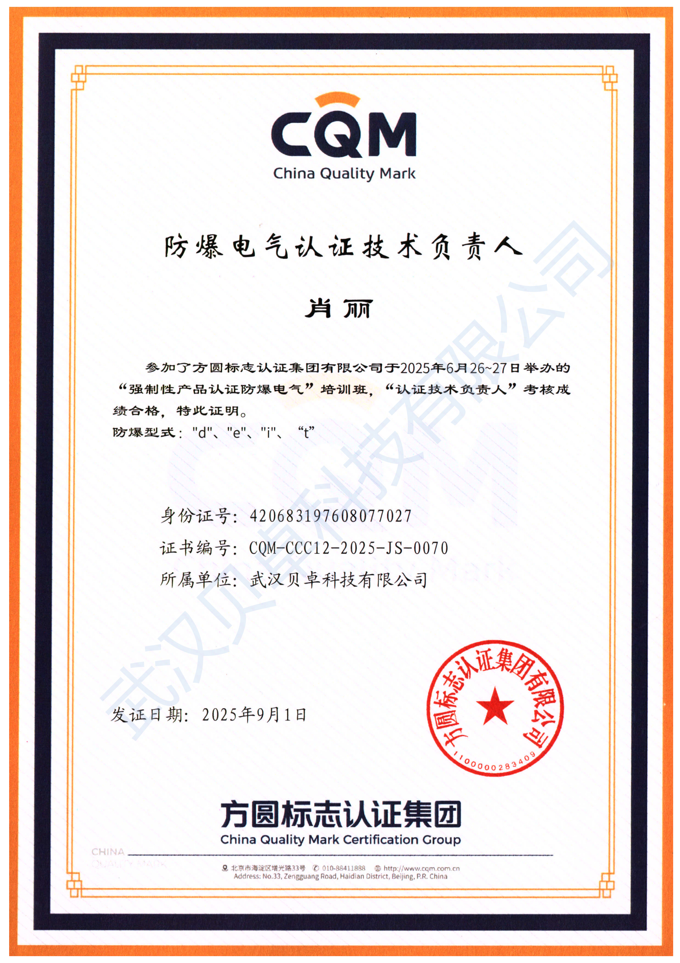 武汉贝卓科技有限公司,是一家经国家工商行政管理局注册的管理咨询专业服务机构。本公司致力于全国:防爆认证【Ex】、安标认证【MA/KA】、3C强制认证【CCC】、消防认证【CCCF】、劳安认证【LA】、生产许可证认证【XK】、矿用设备维修安装资质证等认证咨询,委托检测,产品设计及技术支持等协作和委托代理。